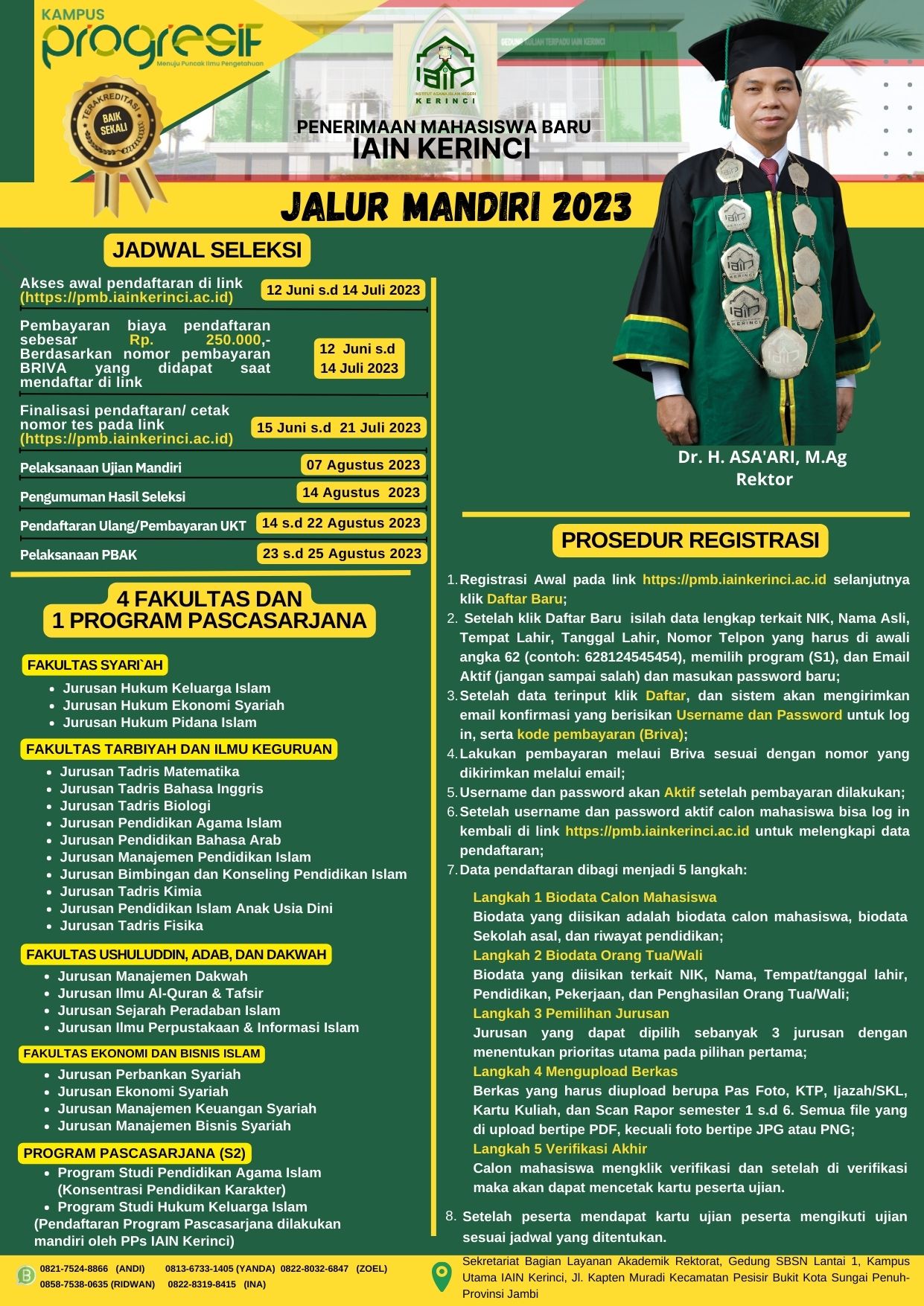 Berikut pamflet (flyer) Penerimaan Mahasiswa Baru (PMB) IAIN Kerinci Jalur Mandiri Tahun 2023