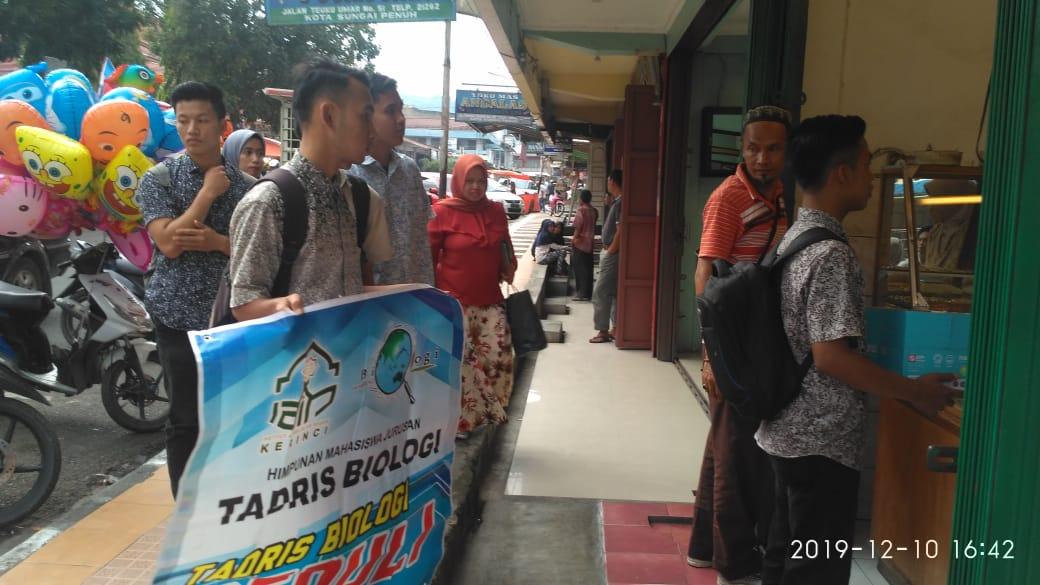 SUNGAI PENUH - HMJ Jurusan Tadris Biologi Fakultas Tarbiyah dan Ilmu Keguruan IAIN Kerinci mengadakan penggalangan dan untuk menyalurkan bantuan kepada korban kebakaran yang terjadi di Siulak Deras pada hari Jumat jam 23.00 WIB. Penggalangan dana dilakukan di kampus IAIN Kerinci dan Pasar Kota Sungai Penuh.