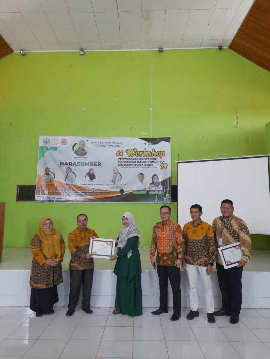 Sungai Penuh - HMJ FEBI IAIN Kerinci Proundly Present workshop dengan tema peningkatan kompentensi mahasiswa dalam persiapan memasuki dunia kerja, prepare your career, prepare your future. Koto lolo, rabu (20/8/2022).