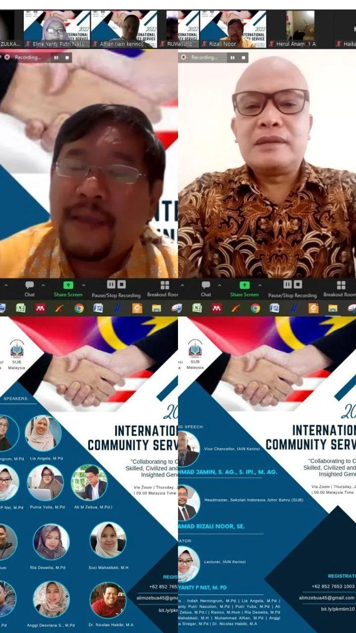 Ali M Zebua. M. Pd.I selaku Presenter pada acara tersebut menyampaikan bahwa kegitan ini adalah merupakan kegiatan PKM Internasional yang harapannya agar kegiatan PKM ini bisa dilanjutkan secara langsung dan bekerja sama lagi dengan IAIN Kerinci di masa akan datang.